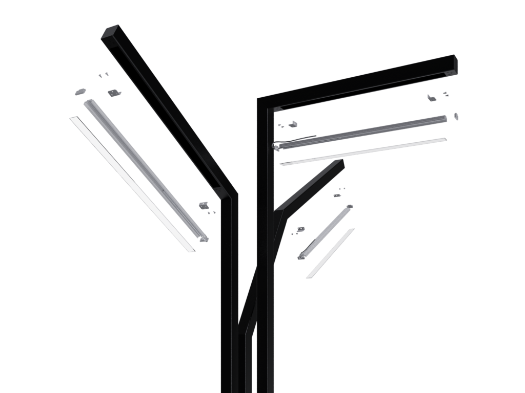 Мощный и элегантный 8-метровый уличный светильник CITY BRANCH с тремя световыми элементами обеспечивает широкое и равномерное освещение больших территорий. Световой поток в 10800-11700 лм и мощностью 90 Вт гарантирует отличную видимость и безопасность.