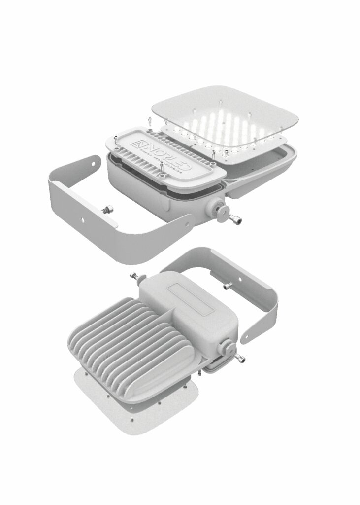 Светильники светодиодные NORLED серии FLOOD PRO предназначены для архитектурно-художественного освещения фасадов и вспомогательного освещения различных помещений. В качестве материала корпуса светильника используется теплорассеивающий композитный материал (ТРК), что позволило отказаться от использования алюминиевых сплавов без ухудшения технических характеристик.