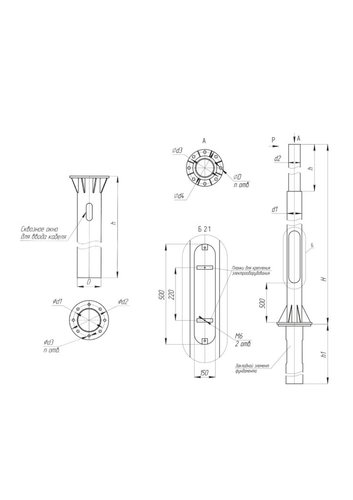Высота от подземной части опоры до нижней кромки люка 500 мм.