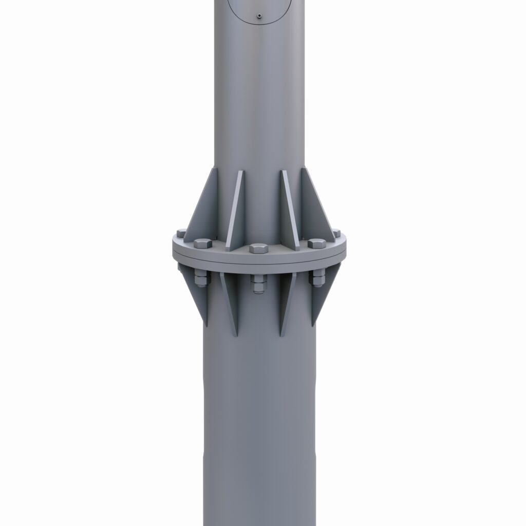 Опора силовая изготавливается из двух отрезков стальных круглых бесшовных труб расчетного сечения, соединенных между собой поперечным сварным стыком. Фланец опоры служит для крепления опоры.